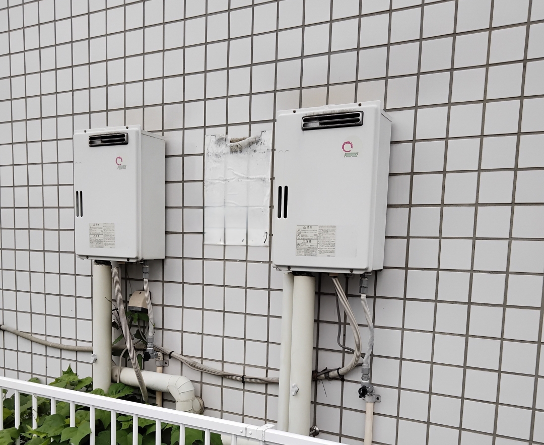 ガス給湯器の交換工事です写真の通り、2台設置されておりましてそのうち1台を交換させていただきました